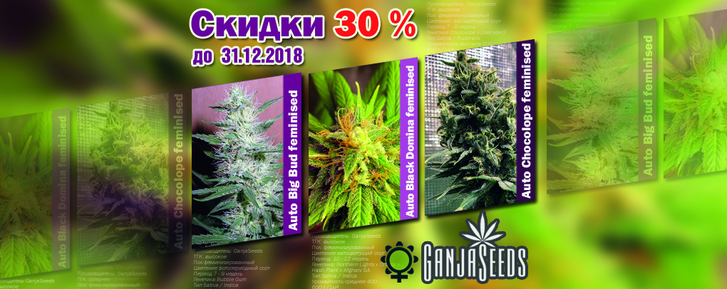 Акция стартует с 21.12.2018 и продлится до 31.12.2018 включительно. Успейте встретить Новый год вместе с Ganja Seeds.