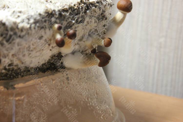 Пришло 1,5 отпечатка. Всё доставлено в срок, упаковано отлично. С одной банки мицелия удалось собрать 4 волны. Варащивал на цельнозерновой пшенице и субстрата кокос + вермикулит. Первый раз пробовал и все вышло идеально, ничего не контоменировало. Грибочки хороши, но для меня показались слабоваты... Так что на очереди Z-strain.