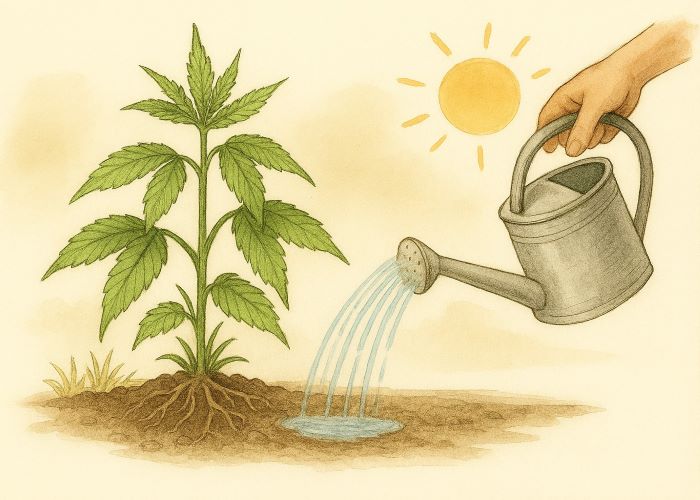 В июне конопля входит в пик водопотребления. Стремительный рост, активный фотосинтез, жаркая погода — все это требует стабильного увлажнения. Но здесь легко попасть в ловушку: «больше воды» не значит «чаще поливать». Поверхностные, частые поливы дают ложную влажность и провоцируют поверхностное корнеобразование. Это делает растения уязвимыми к перегреву и засухе.
