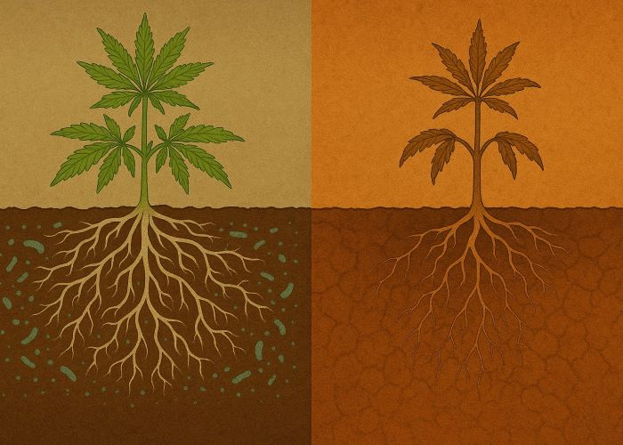 В живых почвах — будь то органические смеси, биогумус или компост — именно микробиота играет ключевую роль в питании каннабиса. Это целая армия микроскопических союзников: бактерии, актиномицеты, грибы, в том числе микориза. Они расщепляют сложные органические соединения, переводят фосфор, калий и серу в усвояемую форму, удерживают азот в стабильном состоянии и подавляют патогены. Но все эти процессы возможны только при активном метаболизме микробных сообществ — а он напрямую зависит от температуры.