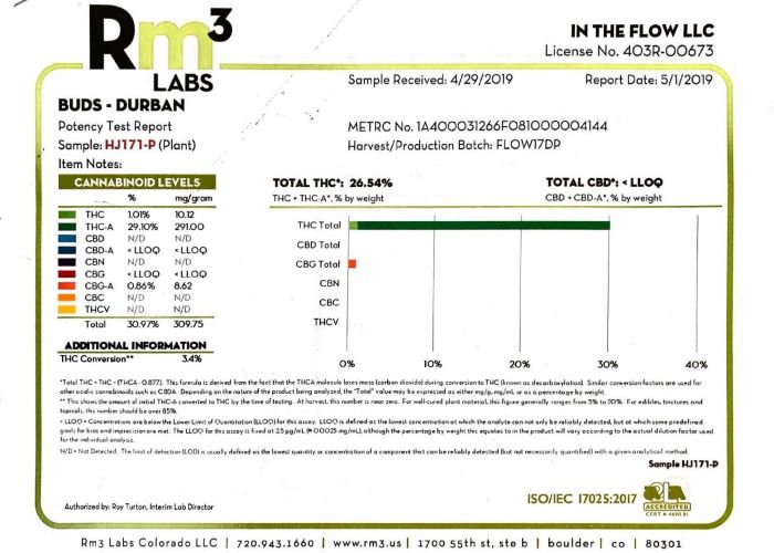 Вы наверняка обратили внимание на процентные соотношения, которые обычно указываются в описании сортов и на упаковке с семенами каннабиса. Зачастую они относятся к наиболее распространенным каннабиноидам ТГК и КБД, производимых этим растением. Каким образом они высчитываются? Рассмотрим на примере лабораторного анализа мощности сорта Durban Poison: