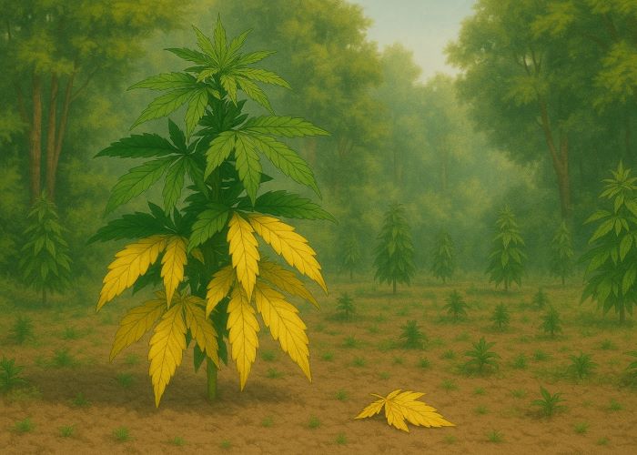Лето приносит солнце, тепло и ускоренный рост — каннабис буквально устремляется вверх, наращивая зеленую массу. Для гровера это горячий сезон во всех смыслах: нужно успевать с поливом, питанием, формированием кроны и контролем микроклимата. Но вместе с этим всплеском активности часто появляется тревожный визуальный сигнал — пожелтение нижних листьев. На первый взгляд — мелочь. Лист пожелтел, засох, отпал. Но иногда за этим «побледнением» скрывается сложный физиологический ответ на стресс, дисбаланс или скрытую проблему. И тут главный вопрос — это норма или симптом?