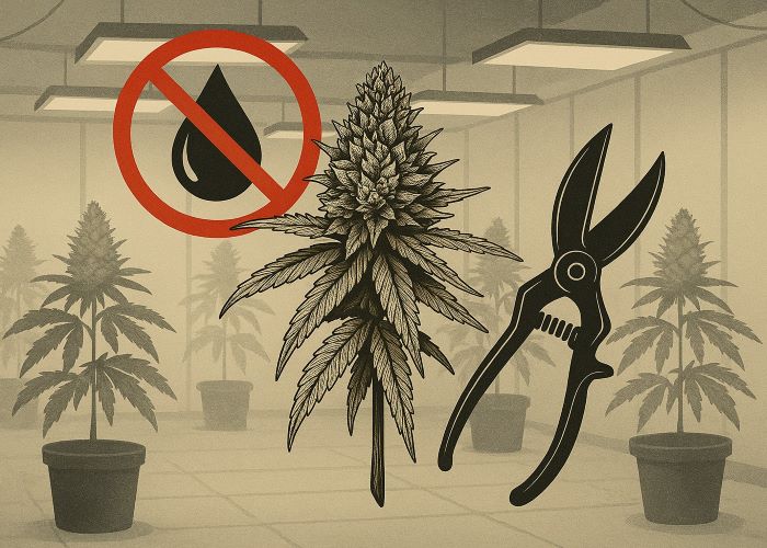 Один из самых действенных способов повысить смолистость и плотность шишек. Умеренный дефицит влаги перед харвестом запускает естественный стресс-ответ растения: