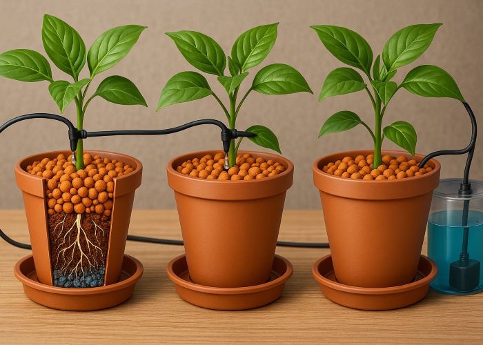 Серамис идеально подходит для систем капельного полива благодаря способности впитывать влагу и равномерно распределять ее по субстрату. Гранулы укладываются в горшки или контейнеры с дренажными отверстиями, а питательный раствор подается через капельные трубки.