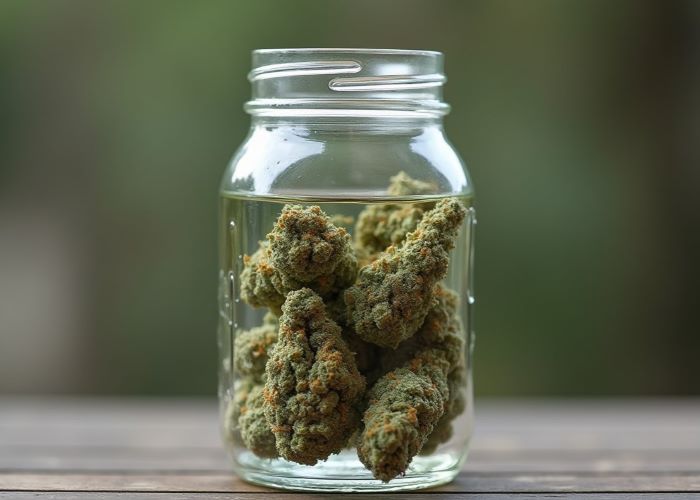 Идеальным материалом для водной пролечки являются свежесрезанные цветы. Они обладают естественной эластичностью и прочностью, что позволяет им лучше выдерживать процесс замачивания без значительных потерь трихом. Если вы работаете с уже высушенными шишками, убедитесь, что они не слишком хрупкие. Пересушенный продукт имеет тенденцию к осыпанию, что может привести к потере трихом — тех самых мельчайших железок, в которых содержатся каннабиноиды и терпены. Перед началом замачивания осмотрите шишки: если они легко ломаются при малейшем нажатии, лучше отказаться от эксперимента или провести его с минимальным количеством материала.