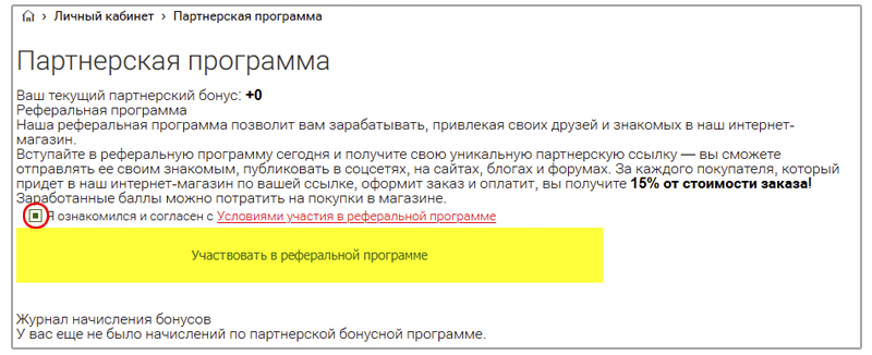 - Регистрация в партнерском магазине.